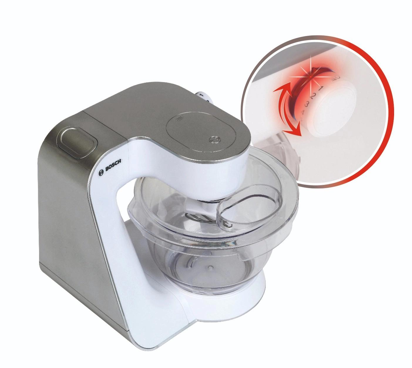 La reproduction fidèle d’un véritable robot de cuisine BOSCH incite les enfants à imiter les adultes et favorise le jeu créatif en cuisine.