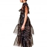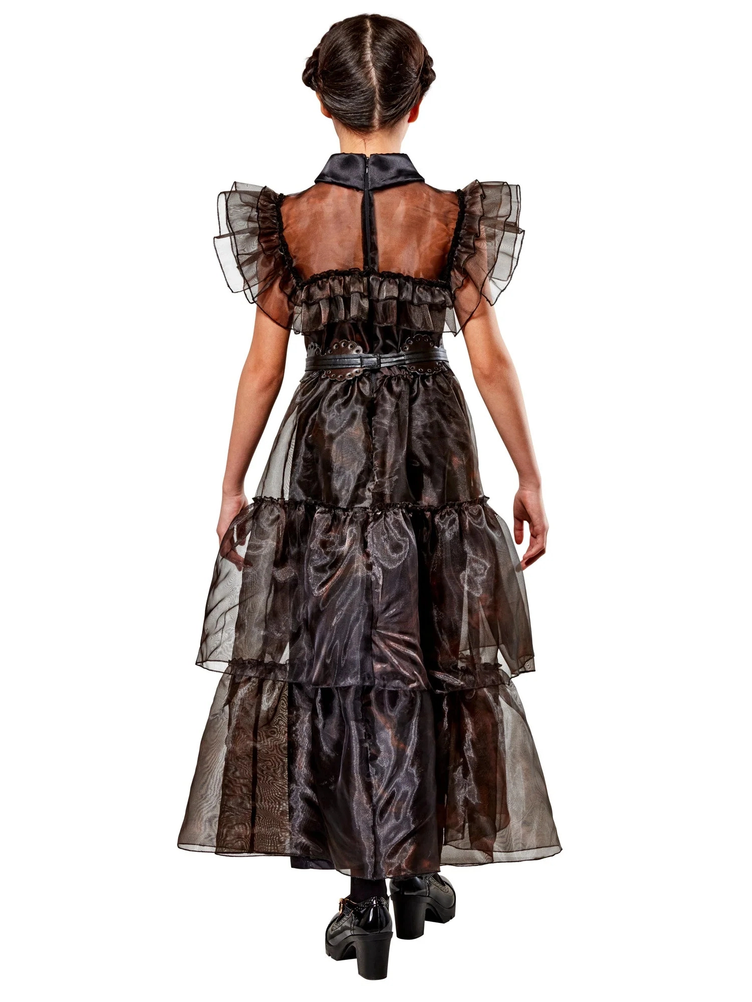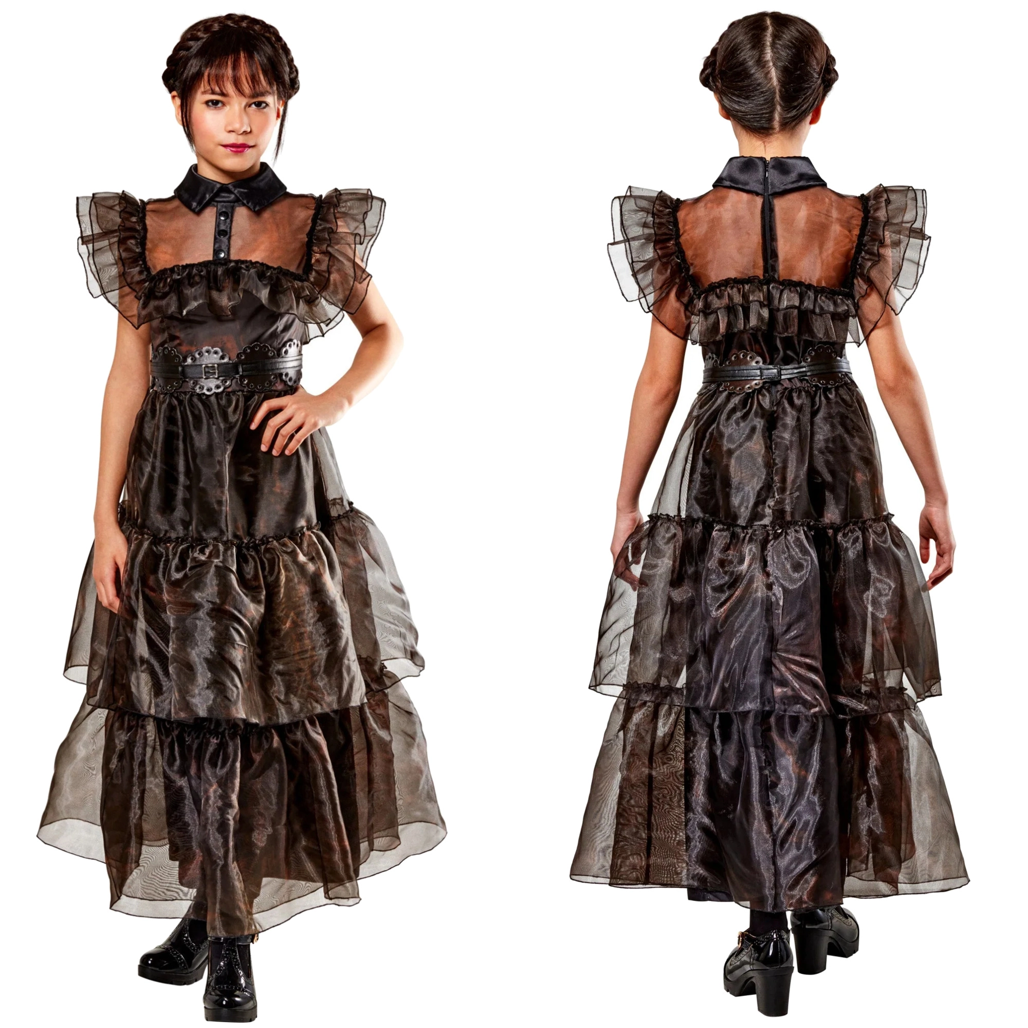 Pour les fans de la série WEDNESDAY de Netflix, cette robe pour fille est un choix parfait. Les volants transparents à multiples couches, le col plus haut et la ceinture décorative créent un authentique look gothique qui attire l’attention au premier regard. La fermeture zippée au dos facilite l’enfilage et la coupe confortable est faite pour danser et faire la fête longtemps.
