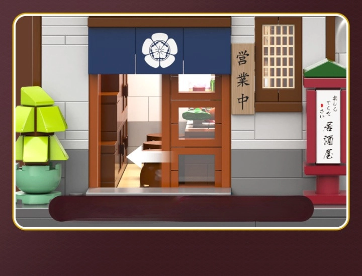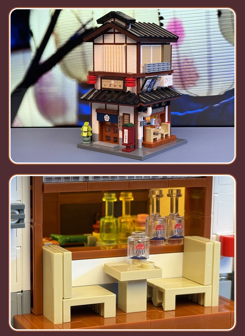 Découvrez le charme de l’architecture japonaise traditionnelle avec l’unique set CaDA. Des lanternes en papier réalistes, des détails en bois, un bar et des éléments d’intérieur élaborés créent une ambiance inimitable. Grâce au panneau latéral ouvrant, vous pouvez facilement voir l’intérieur sans devoir démonter le modèle.