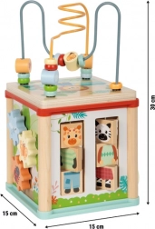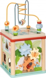 Le jouet favorise le développement de la motricité fine, de la coordination œil-main, de la pensée logique et de la patience. Les enfants s’exercent à reconnaître les formes et les couleurs, à résoudre de petits problèmes et apprennent à manipuler différents mécanismes – des engrenages aux pistes coulissantes, jusqu’aux cubes rotatifs à motifs d’animaux.
