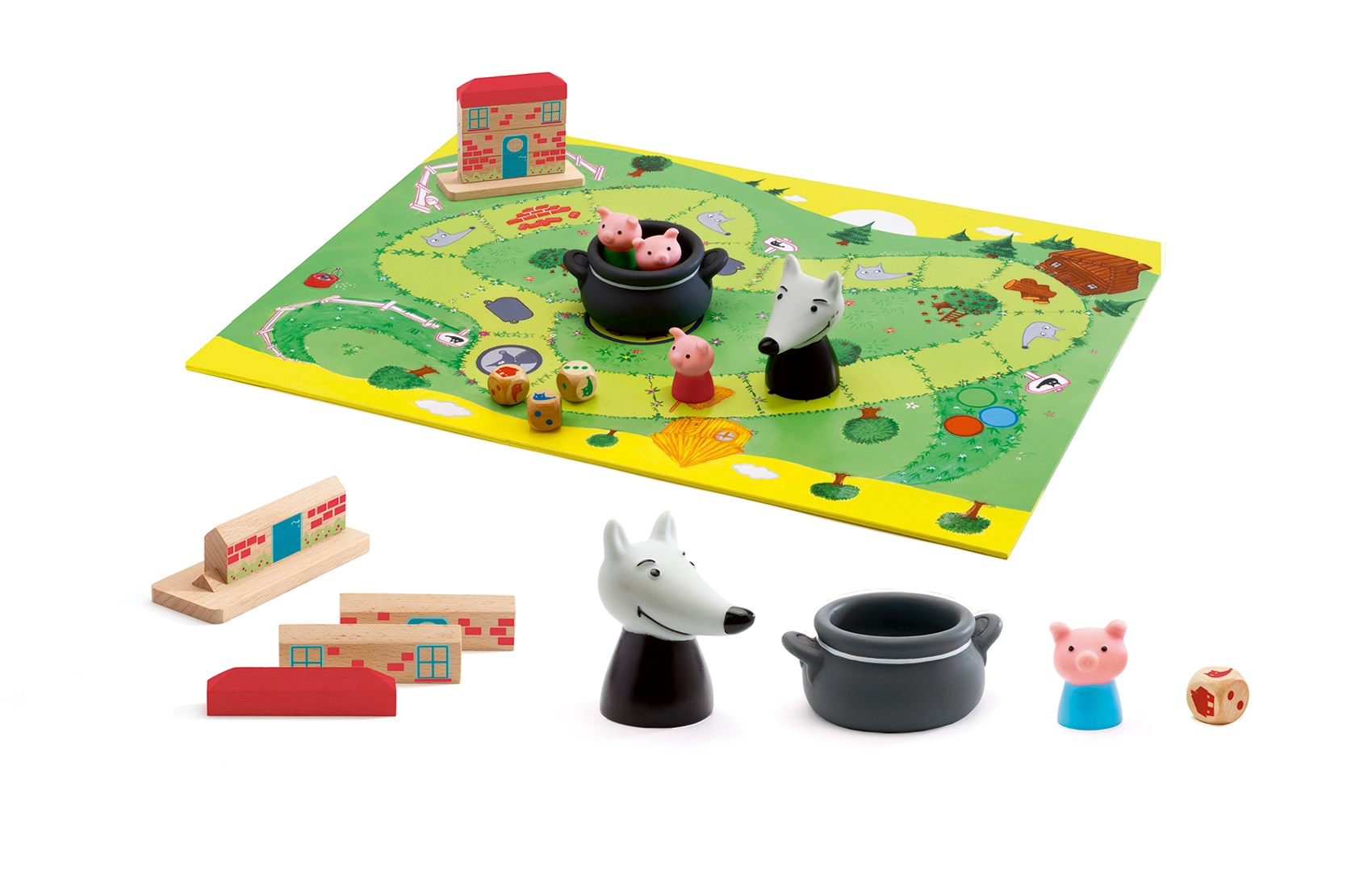 Un jeu coopératif amusant pour enfants où vous sauvez ensemble les trois petits cochons du grand méchant loup. Développe la coopération d’équipe, la planification et la réactivité. Règles simples, histoire palpitante et belle réalisation DJECO pour des moments familiaux réussis.