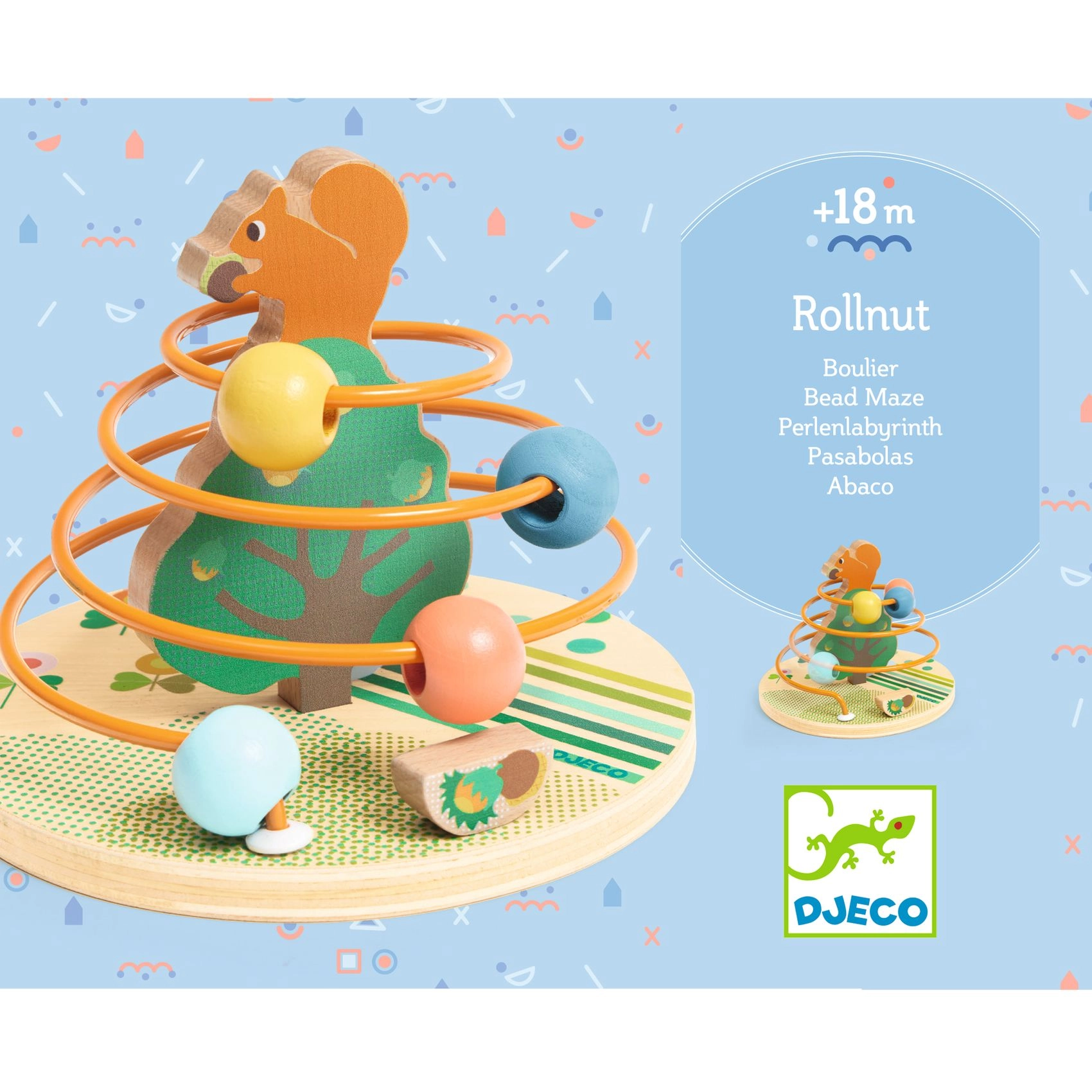 Découvrez le jeu d'enfilage en bois RollNut de DJECO, idéal pour les enfants à partir de 18 mois. Les enfants déplacent et tournent les perles colorées le long de la tige avec des mouvements circulaires et aident à relier l'écureuil à ses noisettes. Ce jouet favorise la motricité fine, la coordination œil–main et la stimulation sensorielle.