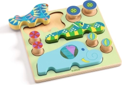 Idéal comme premier puzzle pour les tout-petits : encastrement simple, base en bois robuste et pièces avec poignées ou prise en main facile. Parfait pour le jeu autonome comme pour la découverte partagée avec les parents.