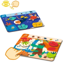 Les activités sont finement illustrées avec des symboles clairs qui facilitent l’orientation des enfants. Les pièces sont robustes et agréables au toucher, pour une prise en main aisée par les petites mains. Le jeu convient parfaitement au jeu en autonomie comme à l’activité familiale, développant naturellement les compétences cognitives.