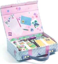 - Enveloppes, cartes illustrées, autocollants, petit carnet, stylo, mallette portable