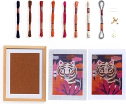 Ce kit de broderie façon tapisserie combine technique traditionnelle et design moderne. Le motif du tigre majestueux dans la jungle se distingue par des couleurs profondes et un relief de broderie texturé qui donne de la profondeur à l’œuvre finale. La boîte contient tout le nécessaire – des aiguilles et fils colorés à la toile avec motif pré-imprimé, ainsi que le cadre en bois pour exposer facilement votre création.