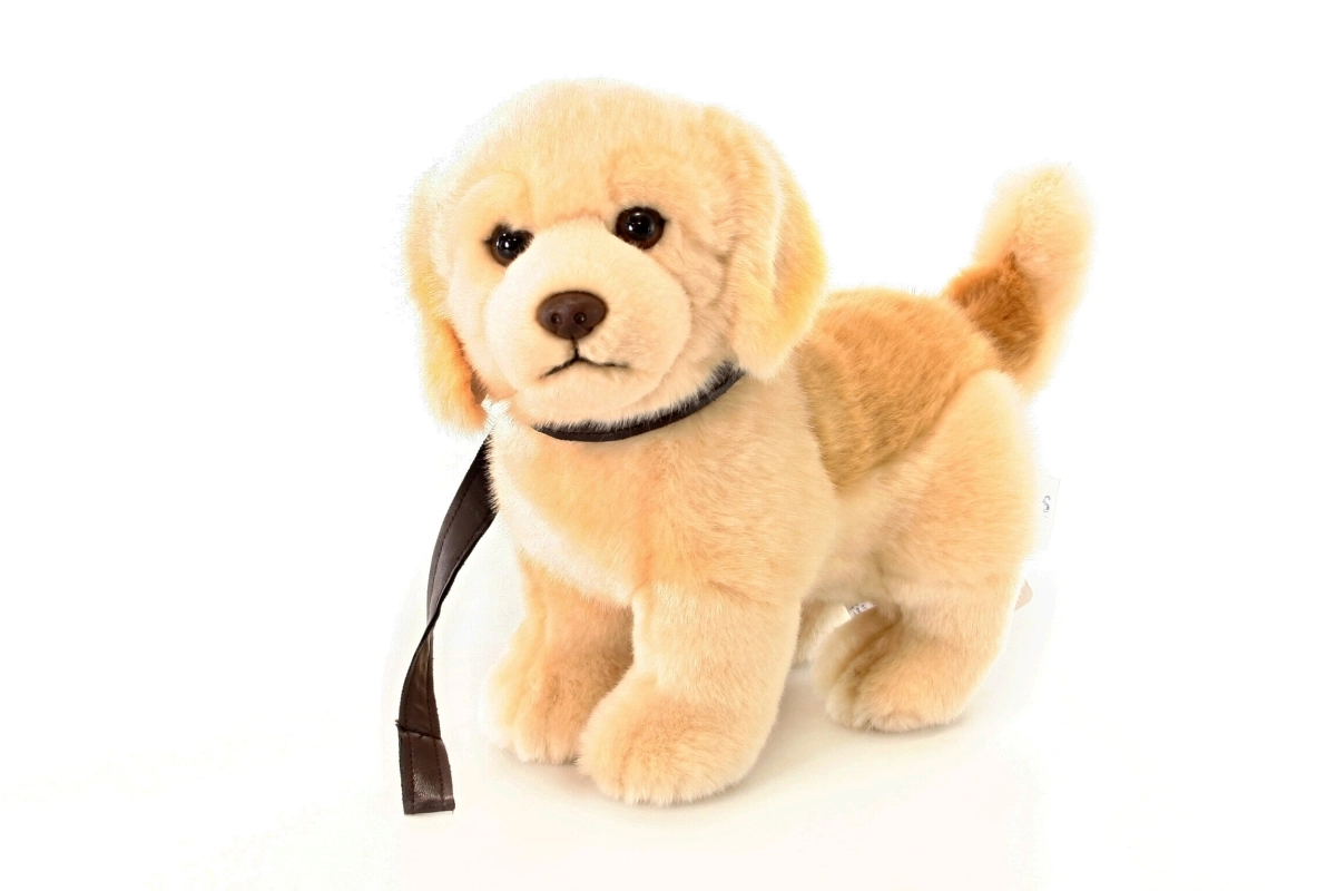 Ce chiot Golden Retriever en peluche, tout doux, est idéal pour les câlins, le jeu et les premières histoires des enfants. Grâce à sa structure stable, le chien tient debout tout seul et avec la laisse incluse, les enfants peuvent s’amuser à simuler des promenades réalistes.