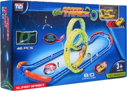 Profitez d’un divertissement sans fin avec une piste de course qui brille dans le noir ! Ce set de 46 pièces propose deux loopings à 360°, des virages serrés avec barrières de sécurité et une voiture rapide avec éclairage. Montage facile et structure modulaire ludique pour d’innombrables cascades et beaucoup d’imagination.