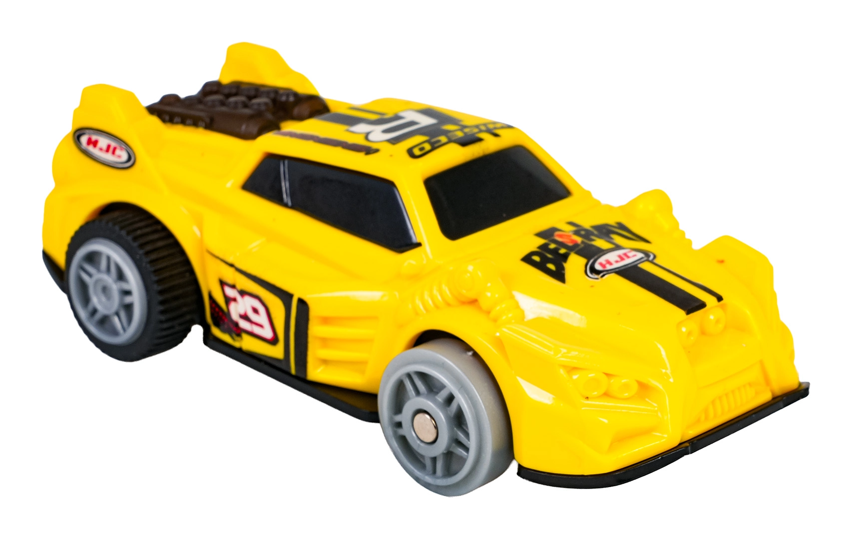 Un petit véhicule jaune aux roues fluides et doté d’un feu arrière intensifie le plaisir de conduite nocturne. Alimentation 2× AAA (non incluses).