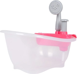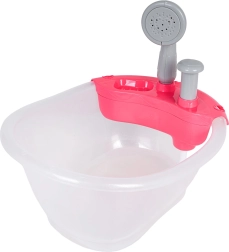 Adorable baignoire pour poupées avec douche, qui ravira les enfants dès 3 ans. Après avoir rempli d’eau et appuyé sur la petite pompe, de l’eau coule réellement de la douche. L’ensemble est fabriqué avec des matériaux sûrs et de qualité, idéal comme cadeau pour les petits et petites soignants.