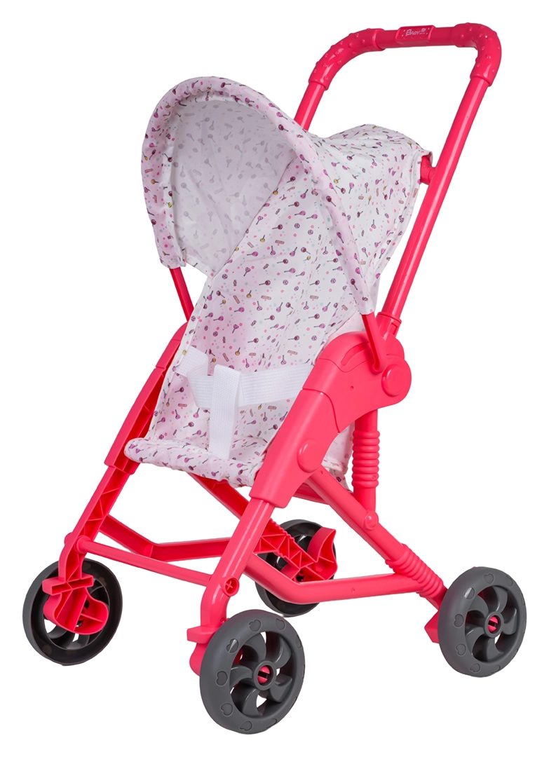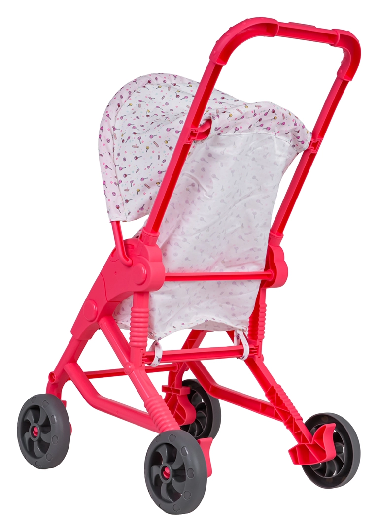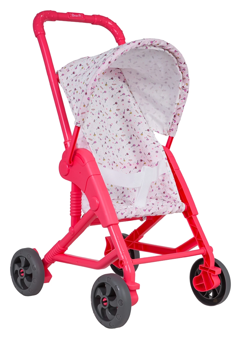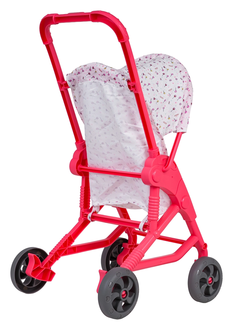 Le siège textile et l’auvent maintiennent la poupée bien en place, et la poussette se range facilement grâce à son châssis compact.