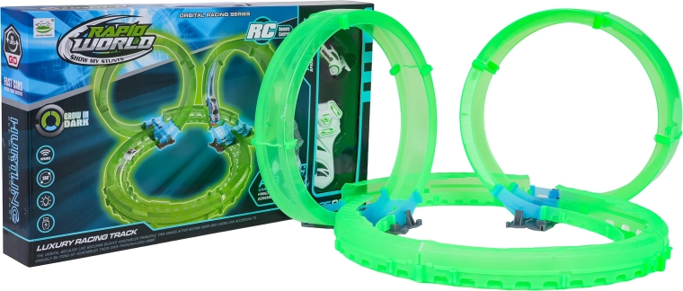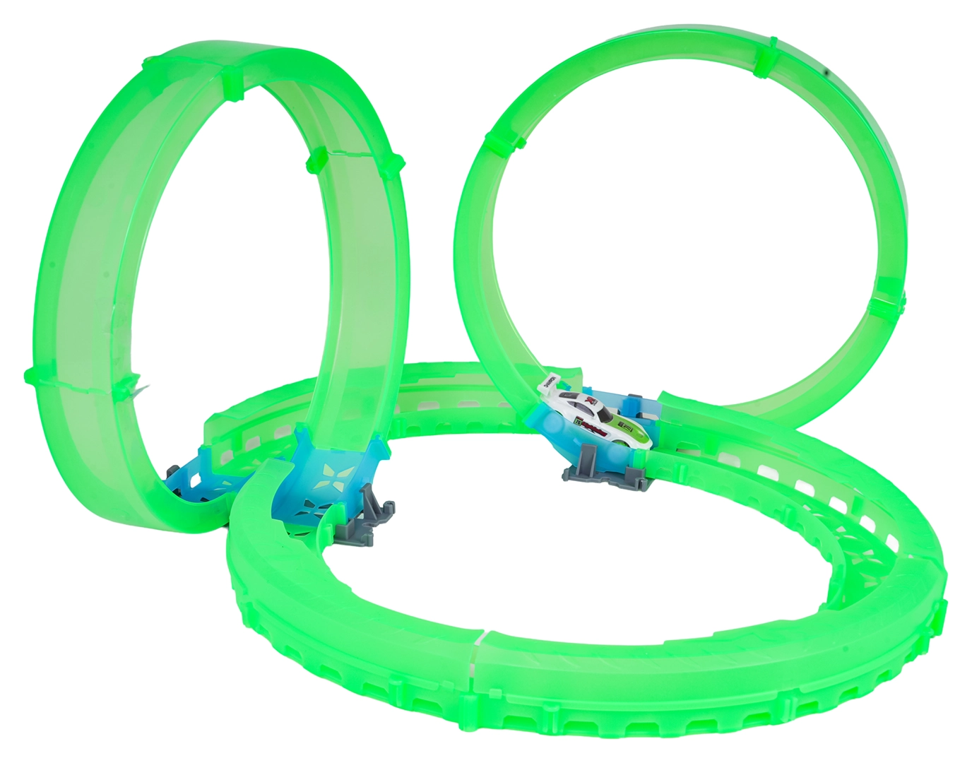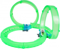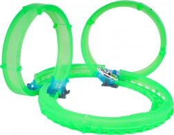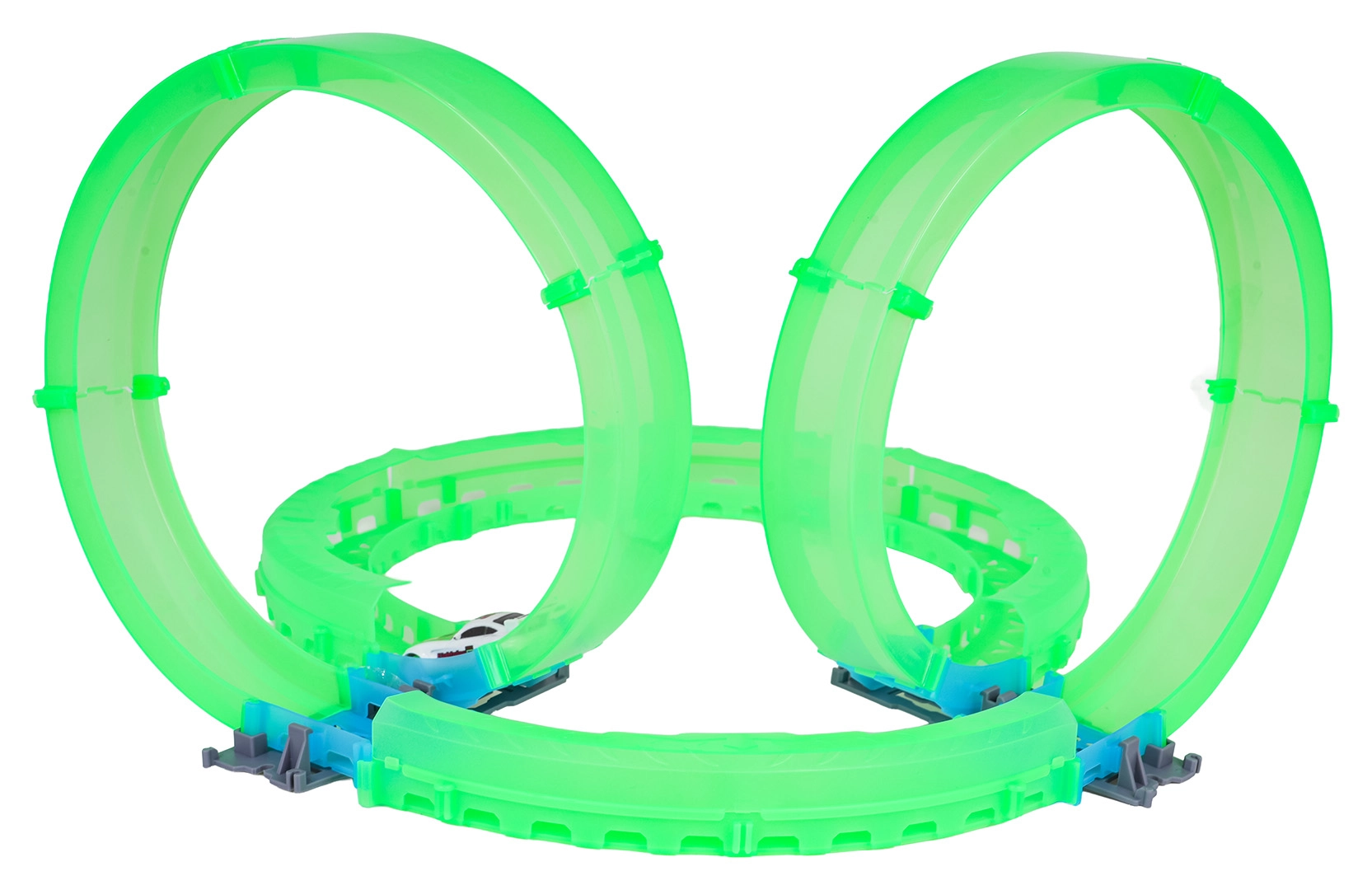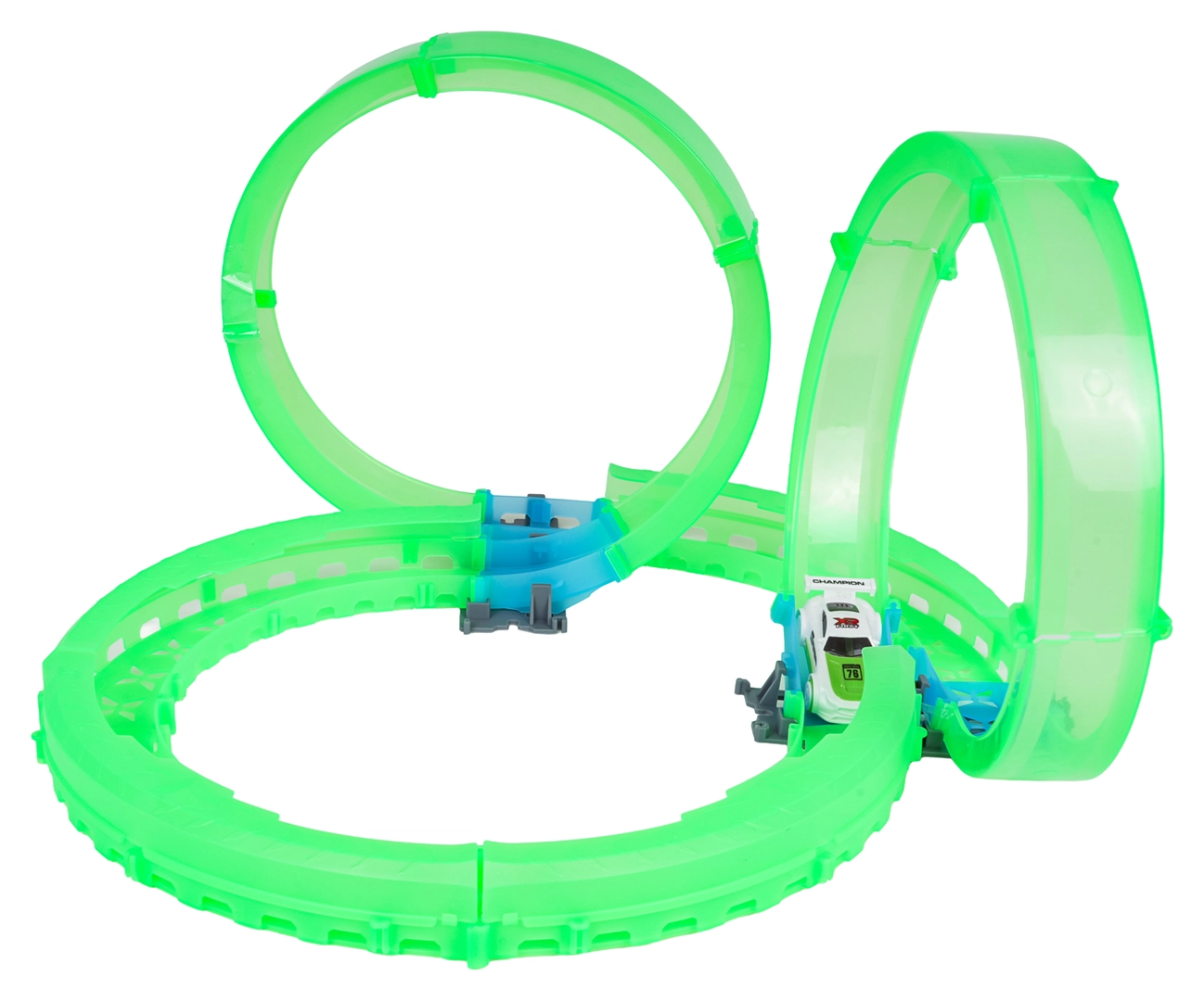 Les éléments translucides de la piste brillent dans le noir et permettent une conduite spectaculaire pleine de boucles et de virages.