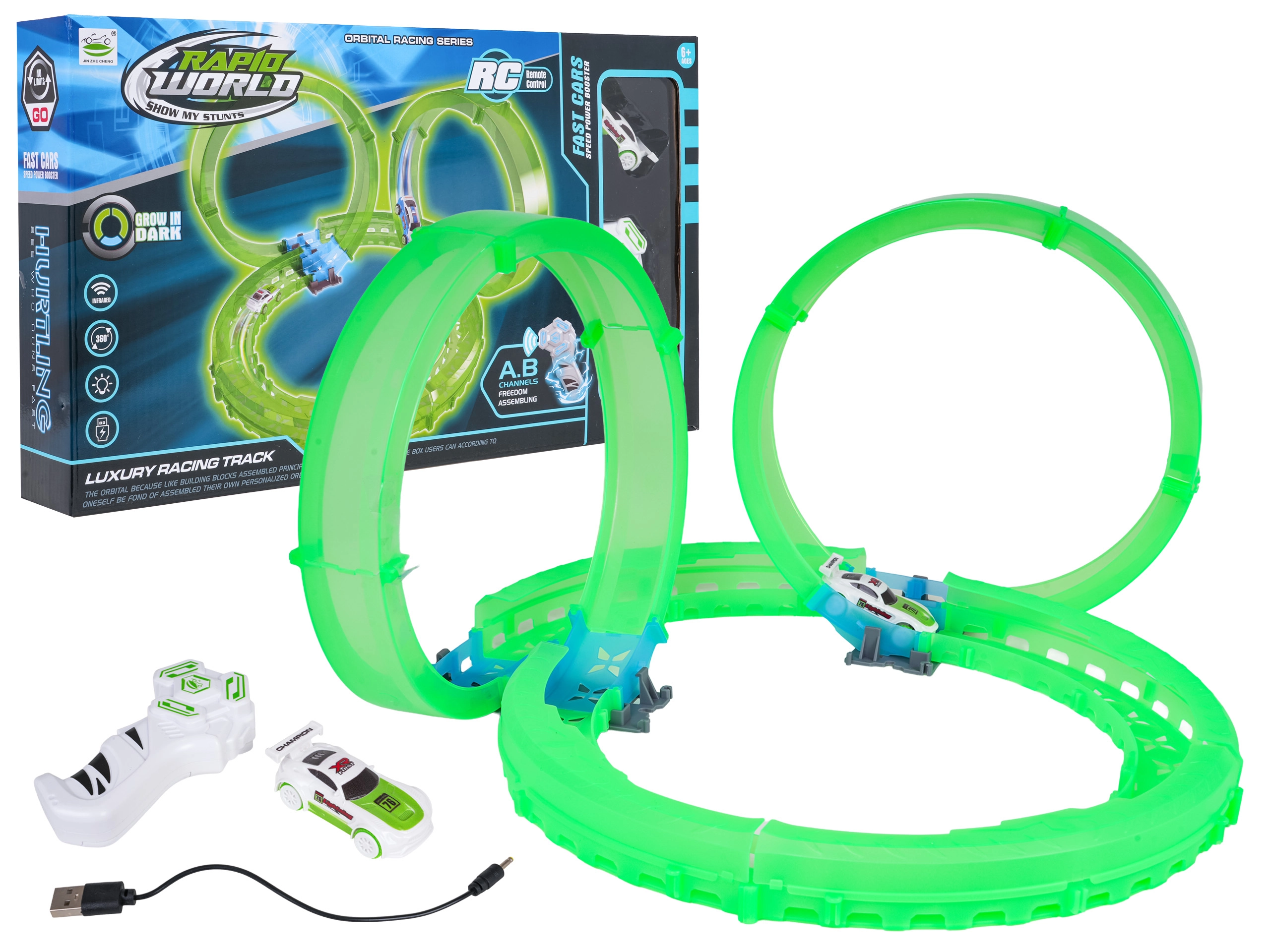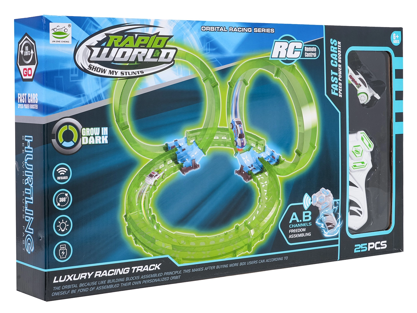 piste lumineuse, voiture LED, commande avant, boucles acrobatiques