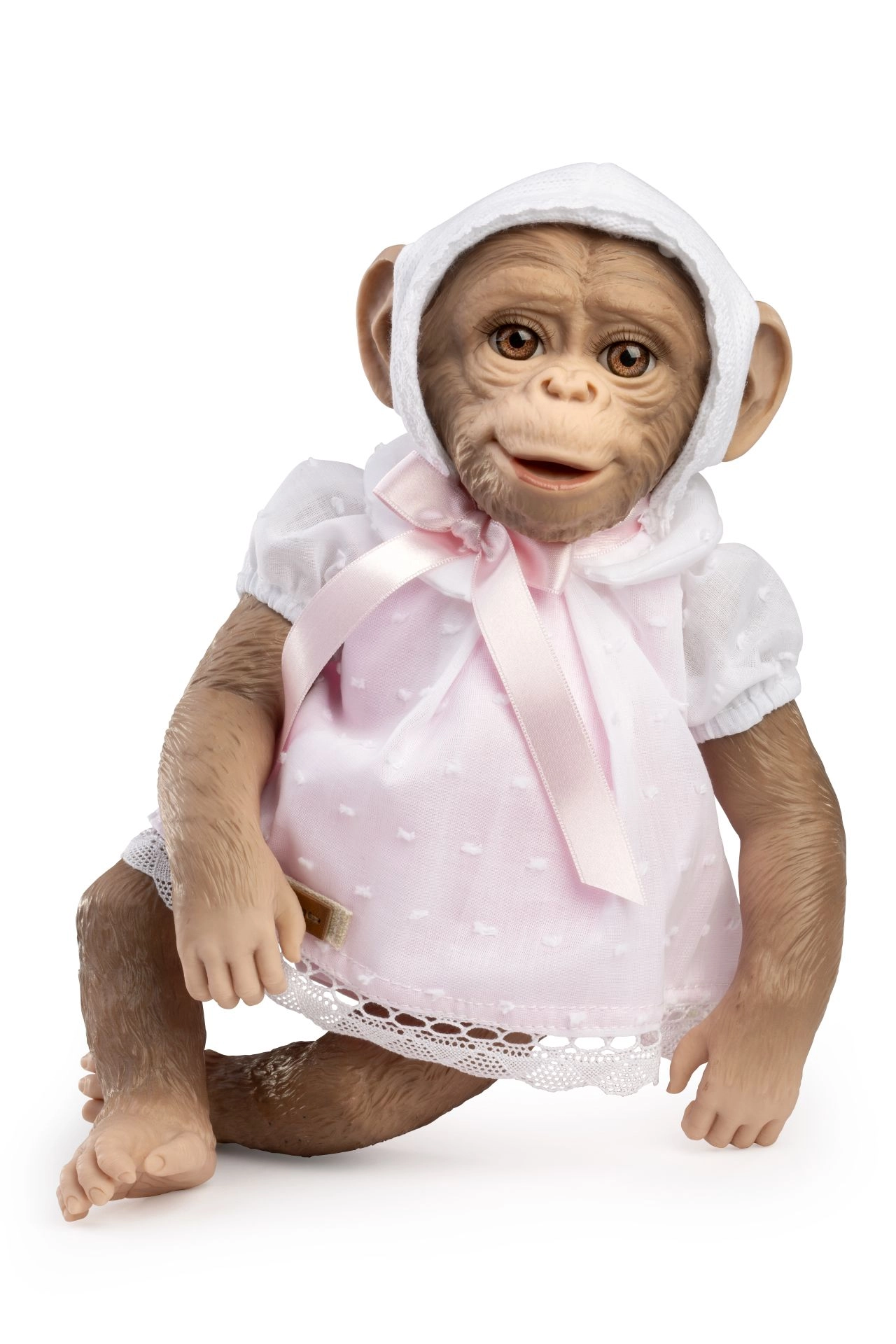Cet élégant ensemble comprend une petite robe rose avec col blanc et dentelle, un bloomer assorti et un bonnet blanc tricoté avec ruban rose. Des détails soignés, comme le tissu délicatement à pois, le galon en dentelle et des coupes confortables, donnent à votre poupée petit singe Reborn un aspect authentique et charmant.