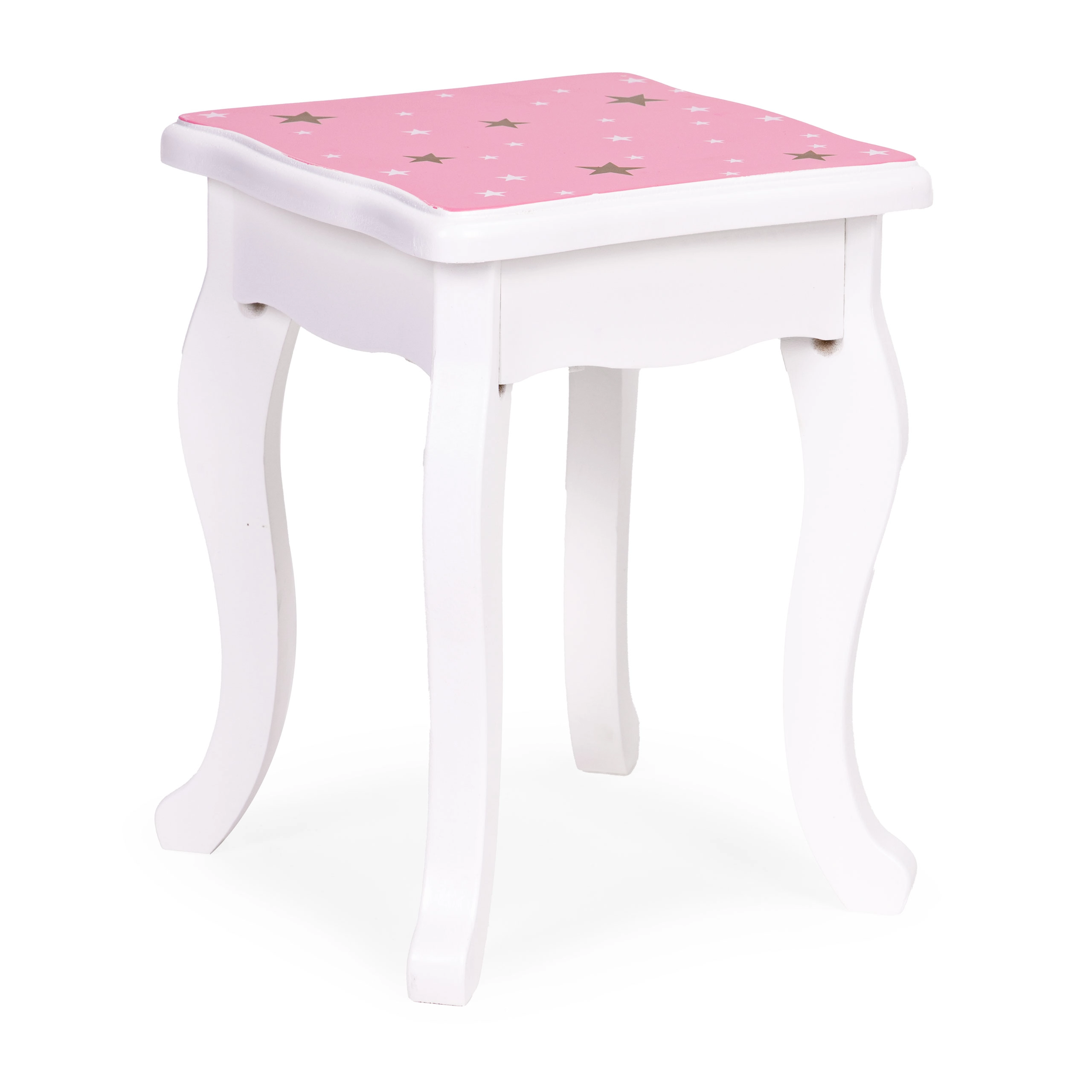 Le tabouret est adapté à la taille des enfants et forme avec la coiffeuse un ensemble élégant et stable pour une assise confortable.