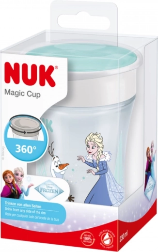 Le NUK Mini Magic 360° est le gobelet idéal pour la transition du biberon à la boisson autonome. Grâce au rebord à 360°, les enfants peuvent boire de n’importe quel côté, sans poignées et presque comme avec une tasse classique. Le disque d’étanchéité en silicone empêche l’écoulement involontaire du liquide, pour une boisson propre et sans accidents – il suffit d’appliquer les lèvres et d’aspirer.