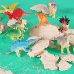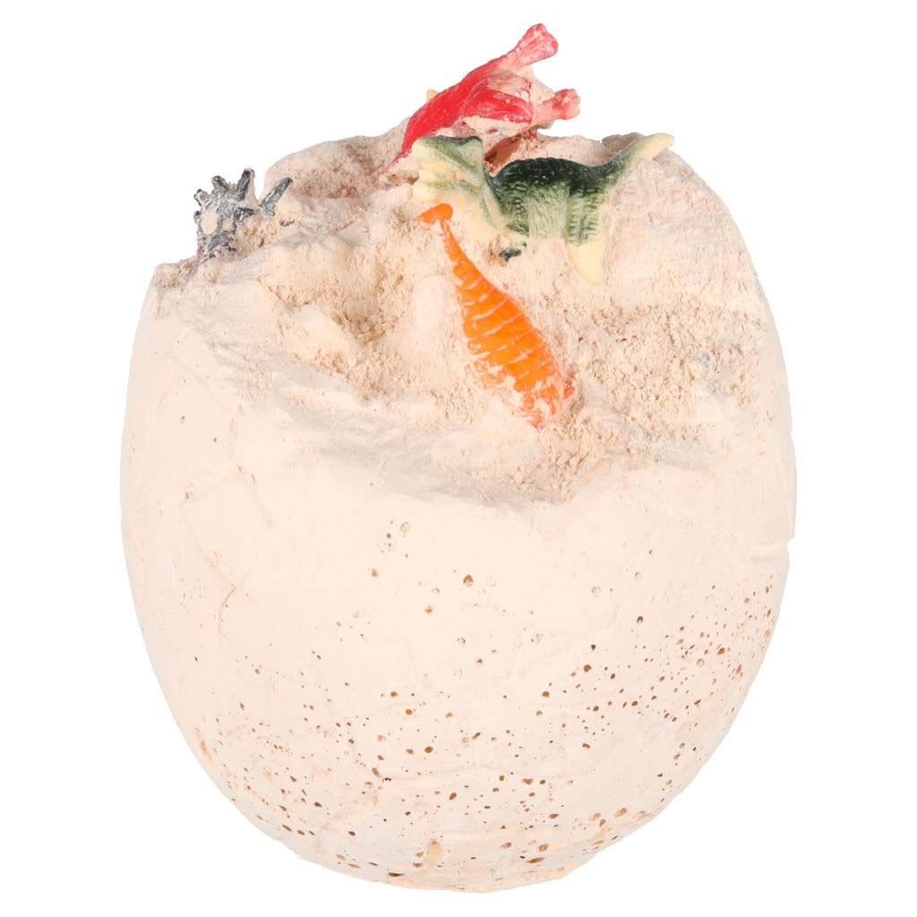 Ce kit archéologique interactif offre aux enfants une expérience de fouilles authentique. La boîte contient un œuf en plâtre plein de surprises et des outils pratiques – un burin, un marteau avec petit couteau et un pinceau – grâce auxquels les enfants découvrent progressivement 12 figurines de dinosaures finement détaillées.
