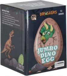 - 1× œuf en plâtre avec 12 figurines de dinosaures, 1× burin, 1× marteau avec petit couteau, 1× pinceau, carte d’information (EN), notice (PL)