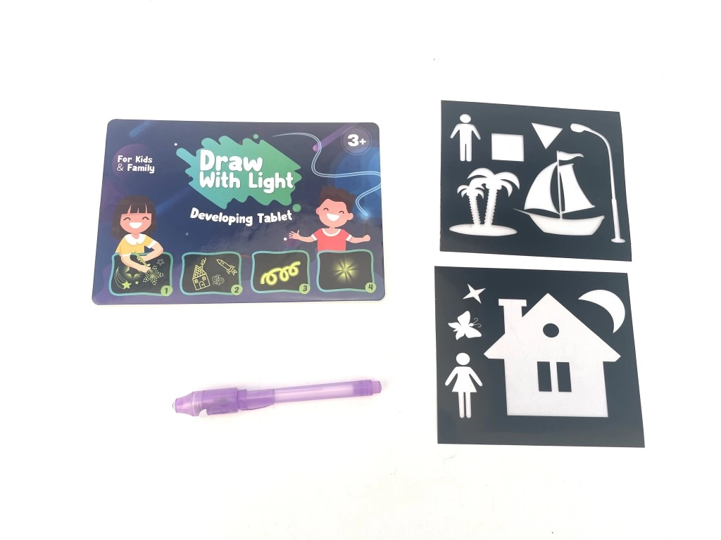 Cette tablette de dessin innovante offre aux enfants une nouvelle façon de créer : le dessin avec la lumière, sans encre ni papier. Le jeu est ainsi propre, sûr et amusant, tout en stimulant la motricité fine, la créativité et l’imagination. Il suffit d’éteindre les lumières et d’observer comment les dessins brillent magiquement sur la tablette.