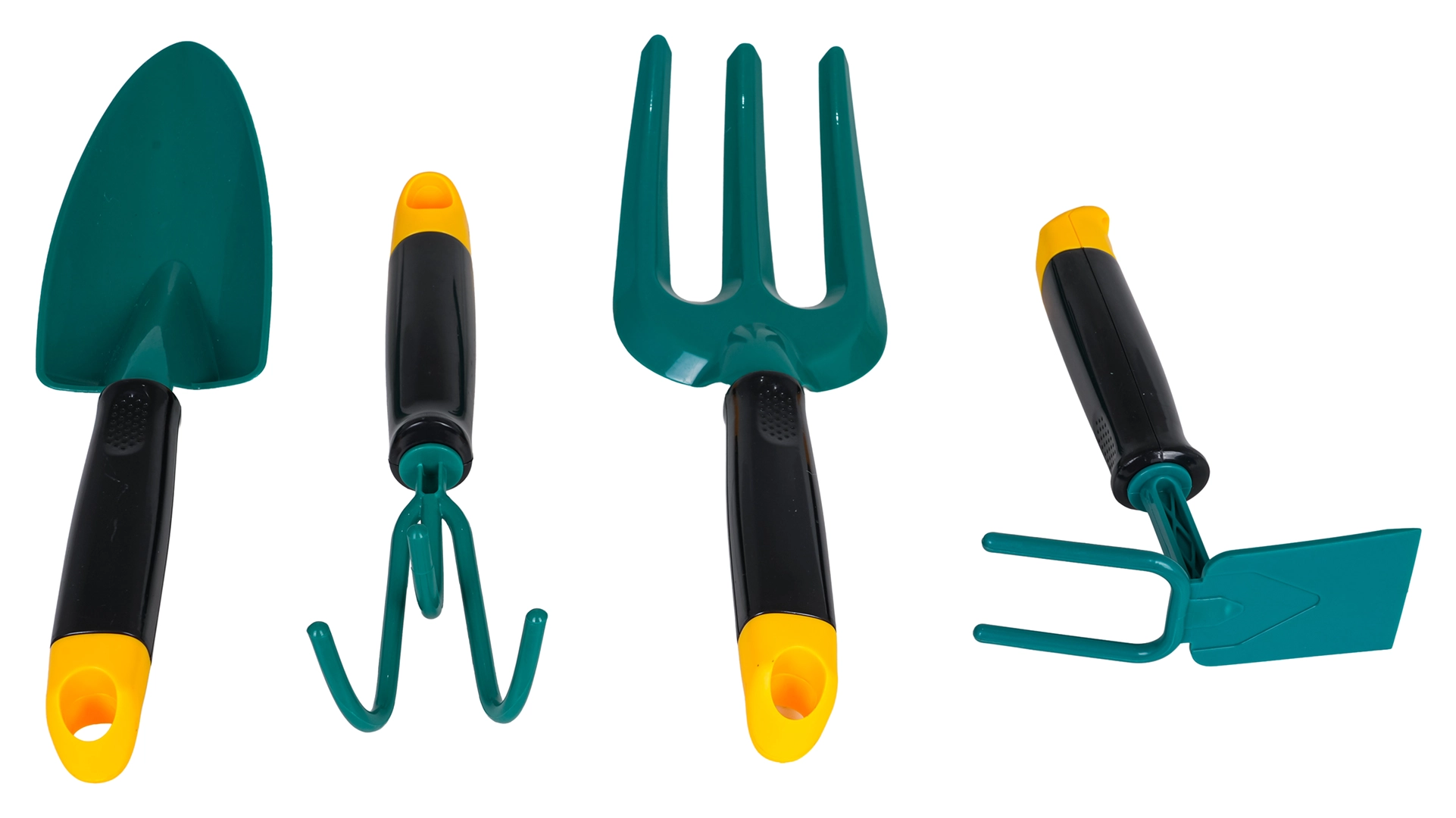 La pelle, le râteau, le cultivateur et la binette possèdent des poignées ergonomiques antidérapantes et des bords lisses pour une utilisation sûre par de petites mains.