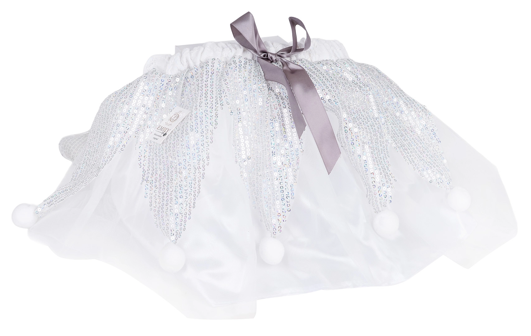 L’enfant reçoit une jupe tutu au même design que la poupée – tulle scintillant, sequins et pompons ludiques pour un look féerique.
