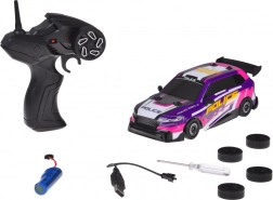 - Voiture RC, radiocommande, 4 roues de rechange, batterie 3,7 V, câble de charge USB, tournevis