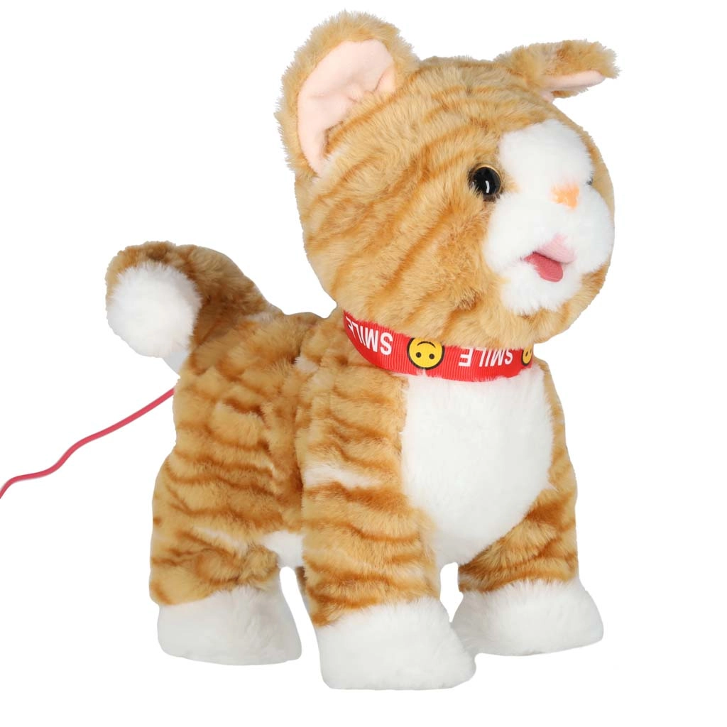 Lorsqu’on le caresse, le chat miaule et bouge la tête ainsi que la langue; pendant la marche, il remue aussi la queue pour un comportement encore plus réaliste.