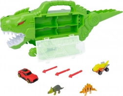 Le set de jeu Teamsterz Beast Machines combine l’univers des dinosaures et des petites voitures dans un ensemble portable. Le grand dinosaure en plastique aux détails réalistes – dents, yeux rouges et “peau” texturée – cache à l’intérieur un espace de rangement pratique pour la collection de voitures et une rampe intérieure permettant aux véhicules de sortir directement par les pattes du dinosaure.