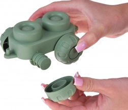 Ce set éducatif polyvalent combine construction, tri et jeu sensoriel stimulant. Les blocs souples et compressibles, aux bords arrondis sécurisés, se tiennent bien en main, sont doux pour les gencives et certains éléments couinent légèrement lorsqu’on les presse – de quoi éveiller la curiosité et prolonger le jeu concentré.