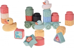 Grâce aux motifs en relief de lettres, chiffres, animaux et formes, les enfants découvrent facilement les premiers concepts, enrichissent leur vocabulaire et développent des compétences prémathématiques. Le set convient aussi pour la baignoire ou la piscine – les pièces flottent, les canetons amusent à chaque bain et les éléments de construction se combinent aussi hors de l’eau.