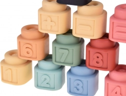Matière douce, compressible et non toxique, facile à saisir et douce pour les gencives – les blocs peuvent aussi servir d’anneau de dentition. Les bords arrondis augmentent la sécurité pendant le jeu.