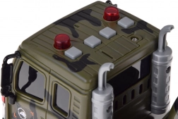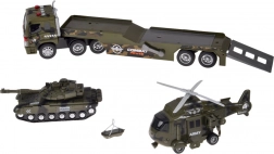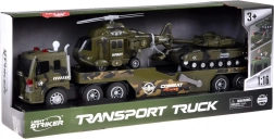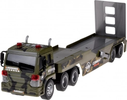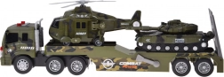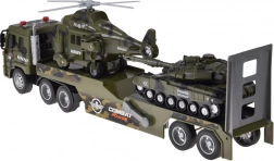 Ce set de transport militaire détaillé permet aux enfants de planifier le transport de matériel, le déploiement d’unités et des opérations de sauvetage. Le camion avec remorque détachable transporte le char et l’hélicoptère, la rampe arrière facilite le chargement. Les lumières et sons sur le toit de la cabine ajoutent tension et ambiance au jeu.