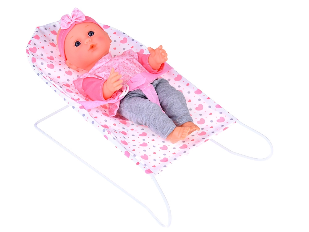 Le transat avec sangle de sécurité maintient le poupon confortablement installé pour les repas et la détente. Le sac permet d’emporter tout le nécessaire en sortie.