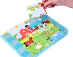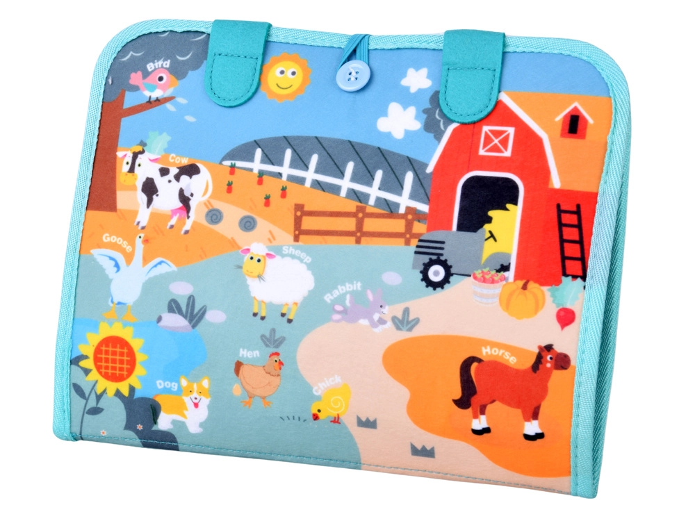 Chaque page propose un type d’activité différent : de l’habillage et l’entraînement des mains, au puzzle et à l’apprentissage des chiffres, jusqu’au calendrier, à la météo et à l’heure. Le set comprend aussi des chiffres et des signes mathématiques pour les premiers exercices. Les illustrations colorées sur le thème de la ferme et des animaux captivent et favorisent la reconnaissance des couleurs et des formes.
