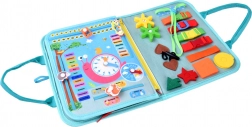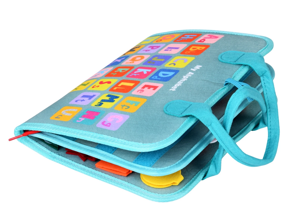 Découvrez un jouet éducatif malin inspiré de l’approche Montessori. Ce livre en feutrine douce, fermé par un élastique et un bouton, renferme des pages thématiques pleines d’éléments mobiles : horloge à aiguilles, fermetures éclair, boucles, lacets, engrenages, curseurs, formes et chiffres. L’enfant exerce naturellement sa motricité fine, sa concentration et son autonomie – sans écran et partout en déplacement.