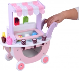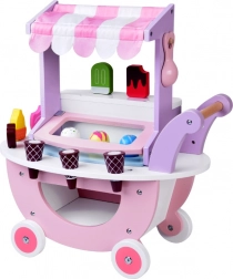 Stand de glaces en bois pastel sur roulettes avec 8 parfums de glace