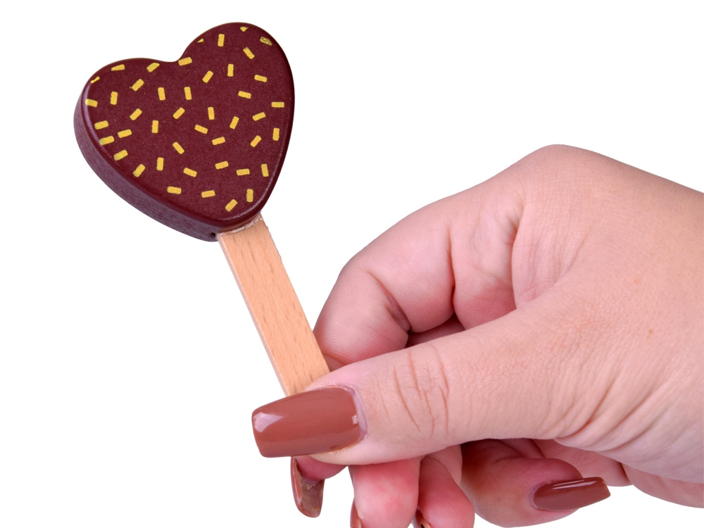 Le set comprend 5 esquimaux sur bâtonnet et 3 cornets avec boules. Les enfants peuvent mélanger les saveurs, empiler les boules et servir les “clients” comme dans une vraie gelateria.