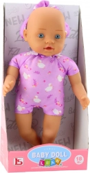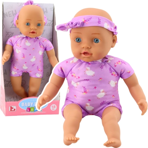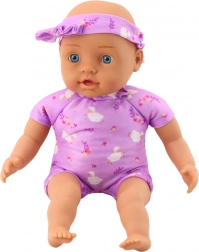 Adorable poupée bébé de 31 cm qui ravira tout enfant aimant prendre soin et jouer à la famille. Elle a des traits du visage réalistes, de grands yeux bleus et un corps tout doux dans un agréable body violet à motif floral. Elle est légère en main, sûre et parfaite pour les câlins comme pour les voyages.