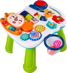 Découvrez un monde ludique d’exploration avec la table 6-en-1 : ballon lumineux, engrenages mobiles, petit arbre avec éléments coulissants, touches colorées de piano, hochets et télécommande musicale amusante. Le jouet joue des mélodies, émet des sons et s’illumine de lumières colorées qui encouragent l’enfant à jouer activement et à apprendre.