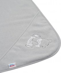 Faites de chaque bain un rituel agréable. La serviette en éponge avec capuche offre une excellente absorption, une douceur adaptée aux peaux sensibles et du confort grâce à ses dimensions pratiques 80 × 80 cm. La couleur grise est universelle et se marie facilement avec le reste du trousseau.