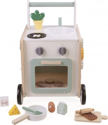 Ce chariot de marche multifonction en bois sert d’appui pour les premiers pas tout en étant un véritable centre de jeu avec des accessoires de cuisine. Les enfants exercent la coordination œil–main, l’équilibre et la motricité fine tout en découvrant l’univers de la cuisine et du jeu de rôle. Les boutons rotatifs du four émettent un clic agréable, la porte est ouvrante et un espace de rangement pratique est prévu pour les accessoires.
