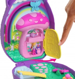 Découvrez un monde magique de poche avec le sac compact Polly Pocket Famille de hérissons – un set de jeu portable avec micro-poupées, animaux et de nombreux accessoires. Ouvrez le ravissant sac hérisson et profitez d'une double dose d'amusement : jardin magique et nurserie des animaux. Les enfants adoreront les éléments interactifs comme « nourrir » le petit hérisson et sa couche « mouillée », la balançoire mobile, la maisonnette champignon et la possibilité de voler dans le ciel grâce à un mécanisme coulissant.