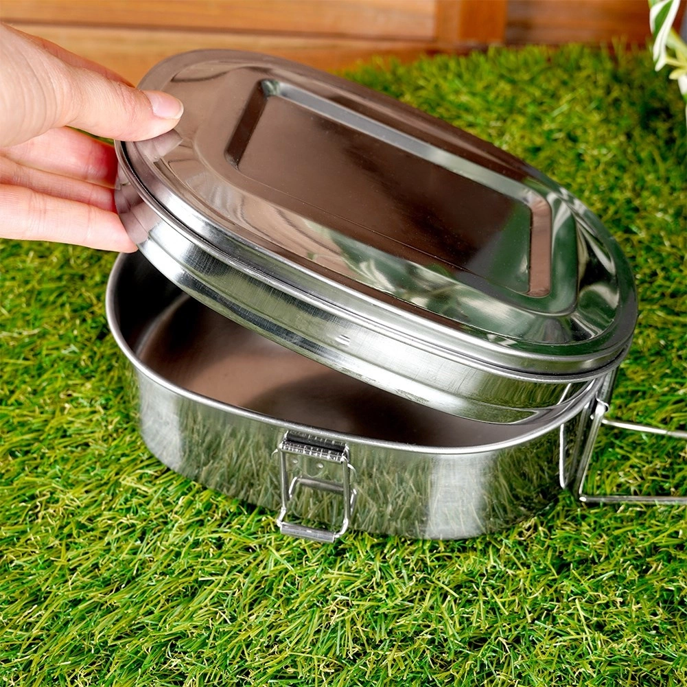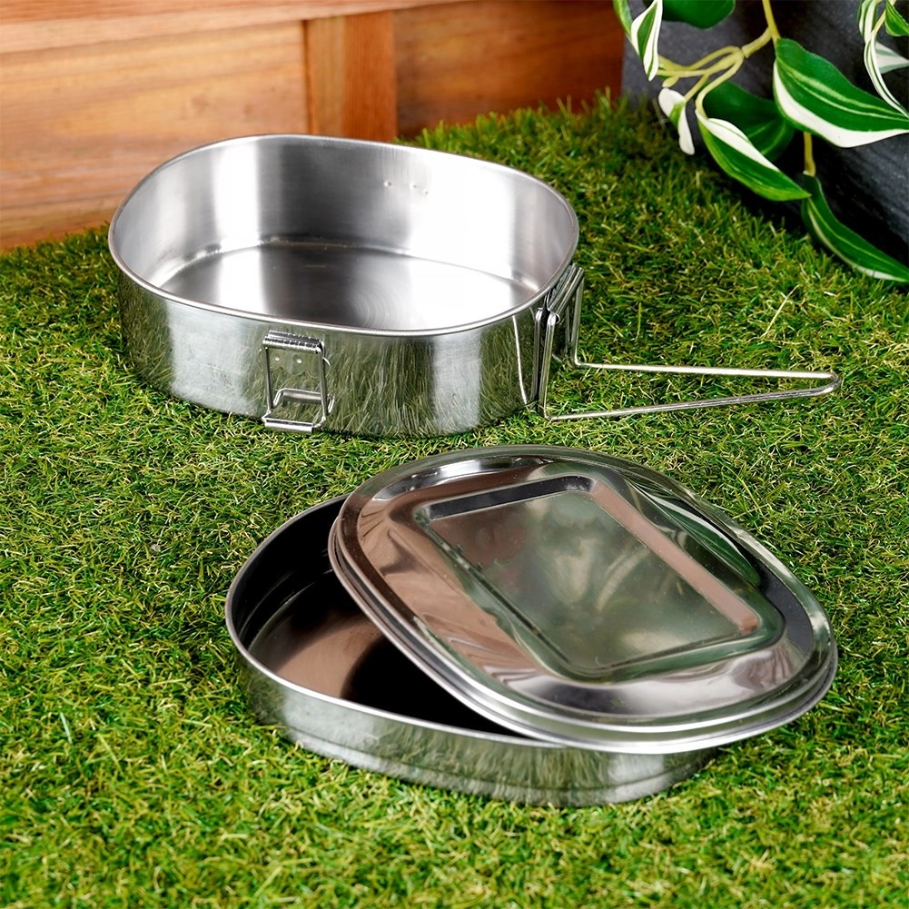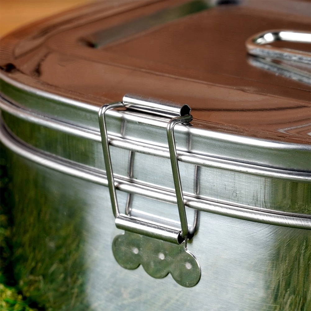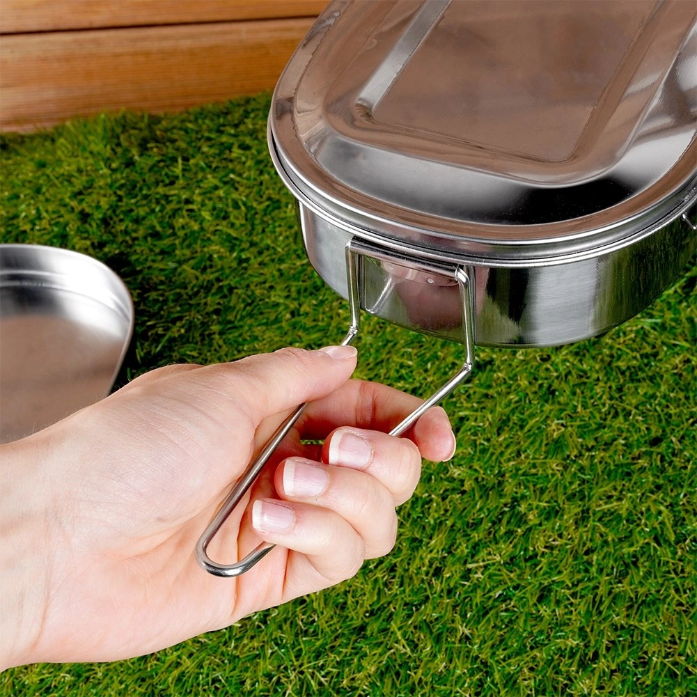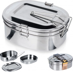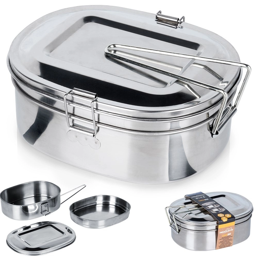 Ce set compact en acier inoxydable de qualité est une excellente solution pour les déjeuners du quotidien comme pour les aventures en plein air. Le récipient principal de 900 ml accueille un plat consistant, tandis que l’insert de 350 ml est idéal pour les accompagnements, collations ou desserts. Une fois fermé, l’ensemble est stable grâce à des clips fiables et une poignée rabattable facilitant le transport.