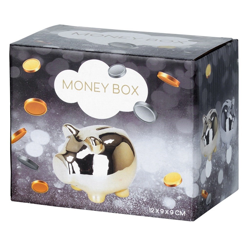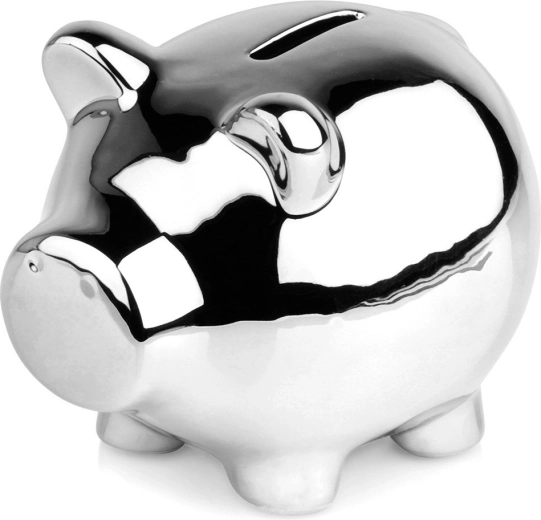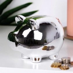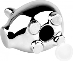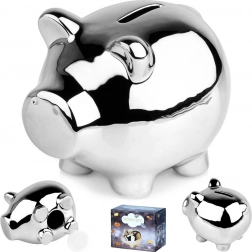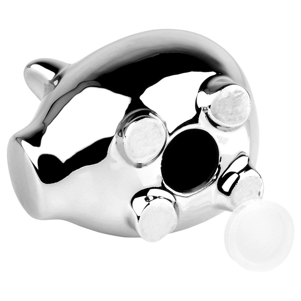 Tirelire élégante en forme de cochon avec une surface argentée à effet miroir en céramique. Pratique, la fermeture inférieure ouvrable permet de retirer les économies sans casser la tirelire. Ses dimensions compactes 11,5 × 9 × 9 cm et son design moderne en font un accessoire décoratif stylé et une excellente idée cadeau pour enfants comme adultes.