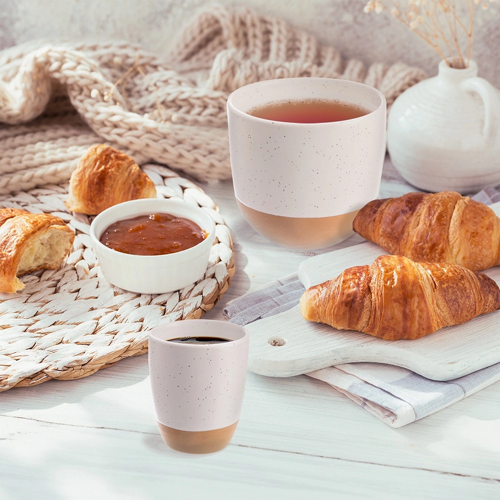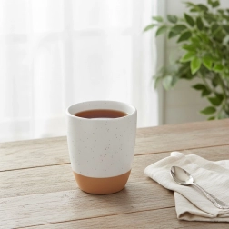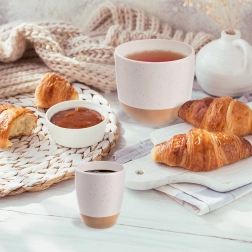 Cette tasse à espresso en céramique de 90 ml séduit par son design bicolore avec glaçure blanche mouchetée et base naturelle en grès. Grâce à sa forme ergonomique, à ses parois épaisses pour une meilleure isolation thermique et à sa compatibilité lave-vaisselle et micro-ondes, elle est idéale au quotidien et complétera joliment votre service de table.