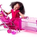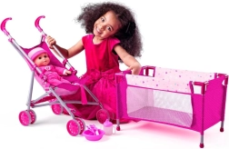 Ce bel ensemble contient tout ce dont votre enfant a besoin pour s'occuper de sa poupée préférée. Il comprend une poussette sportive avec un cadre métallique, extrêmement pratique grâce à sa facilité de manipulation. Un lit de voyage est également inclus, idéal pour le jeu à la maison et en extérieur.