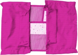 Le lit rose avec un cadre métallique est idéal pour jouer à la maison ou à l'extérieur. Il est portable et léger.