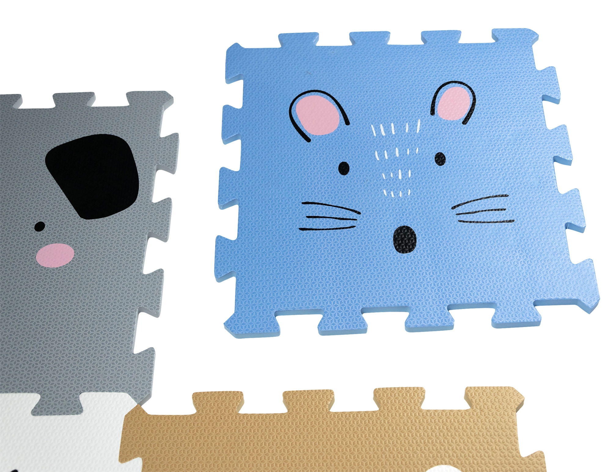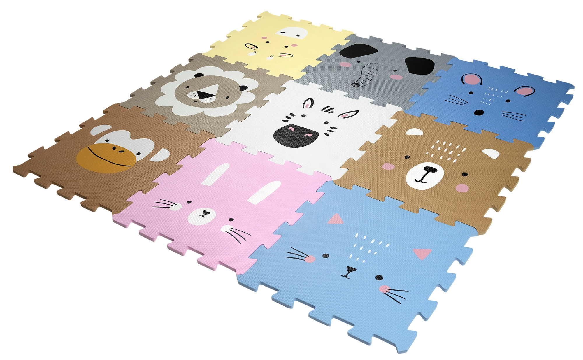 Chaque pièce est ornée d’un visage d’animal différent, ce qui favorise la reconnaissance, la communication et le développement de l’imagination.