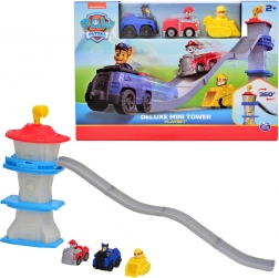 - Tour avec rampe (3 mini tours assemblables en une seule), 3 mini véhicules avec figurines (Chase, Marshall, Rubble)