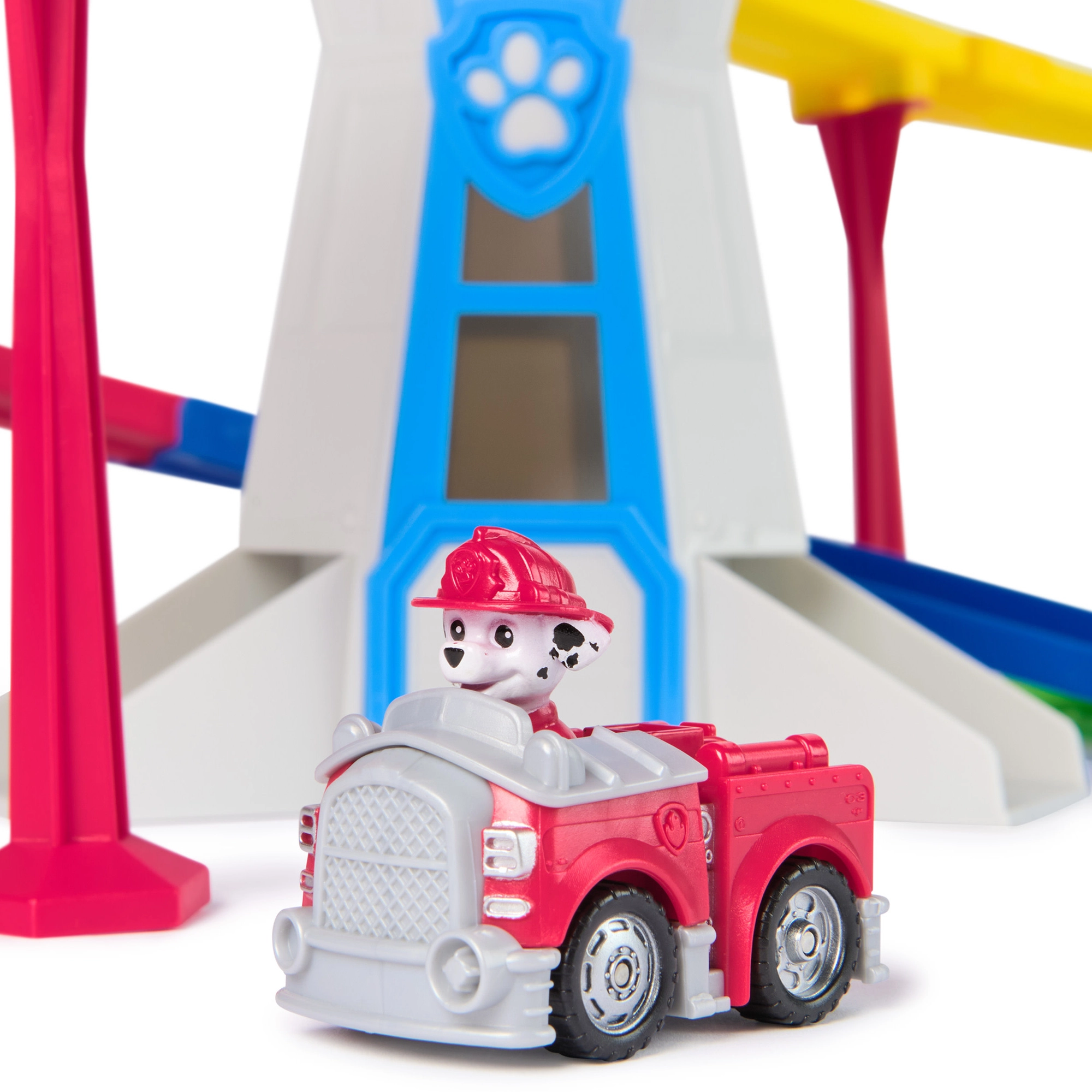 Ce set de jeu robuste et coloré, inspiré de l’univers de la PAT’ PATROUILLE, transporte les enfants à Adventure Bay. La tour, avec ses détails réalistes et ses deux rampes larges, permet de lancer les véhicules directement dans l’action – il suffit de placer la voiture au sommet et de partir en mission de sauvetage.